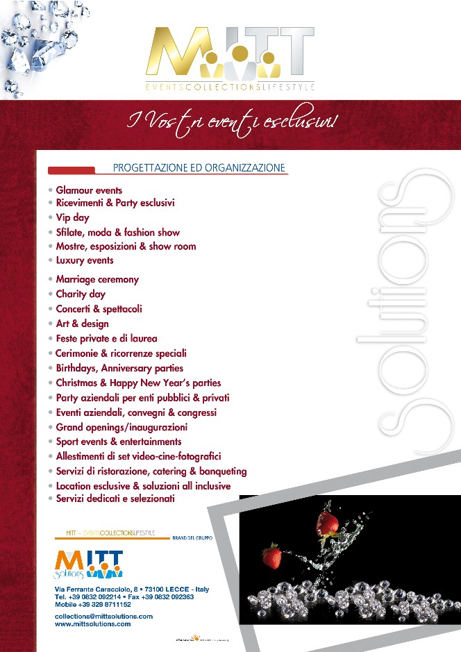 Home Page | Company Profile | Management | Brands del Gruppo | Meetings-Congress | ECM | Sales Marketing | Incentive & Incoming | Training & Job | Wedding Events | Events Collections | Inaugurazione MITT | Dove siamo | Contatti | Links Utili | Liberatoria | News: Viaggi - Tour e Vacanze | Mappa del sito
